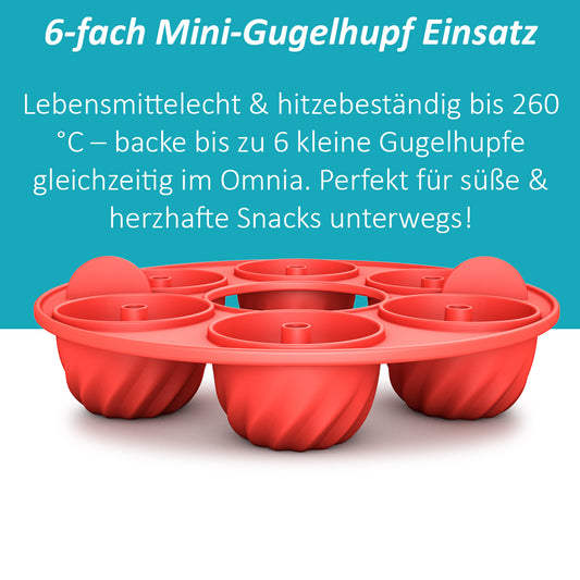 Gugelhupf Einsatz 6 Mulden kompatibel mit Omnia Campingbackofen – lebensmittelecht & hitzebeständig bis 260 °C – Zubehör für Mini Gugelhupfe