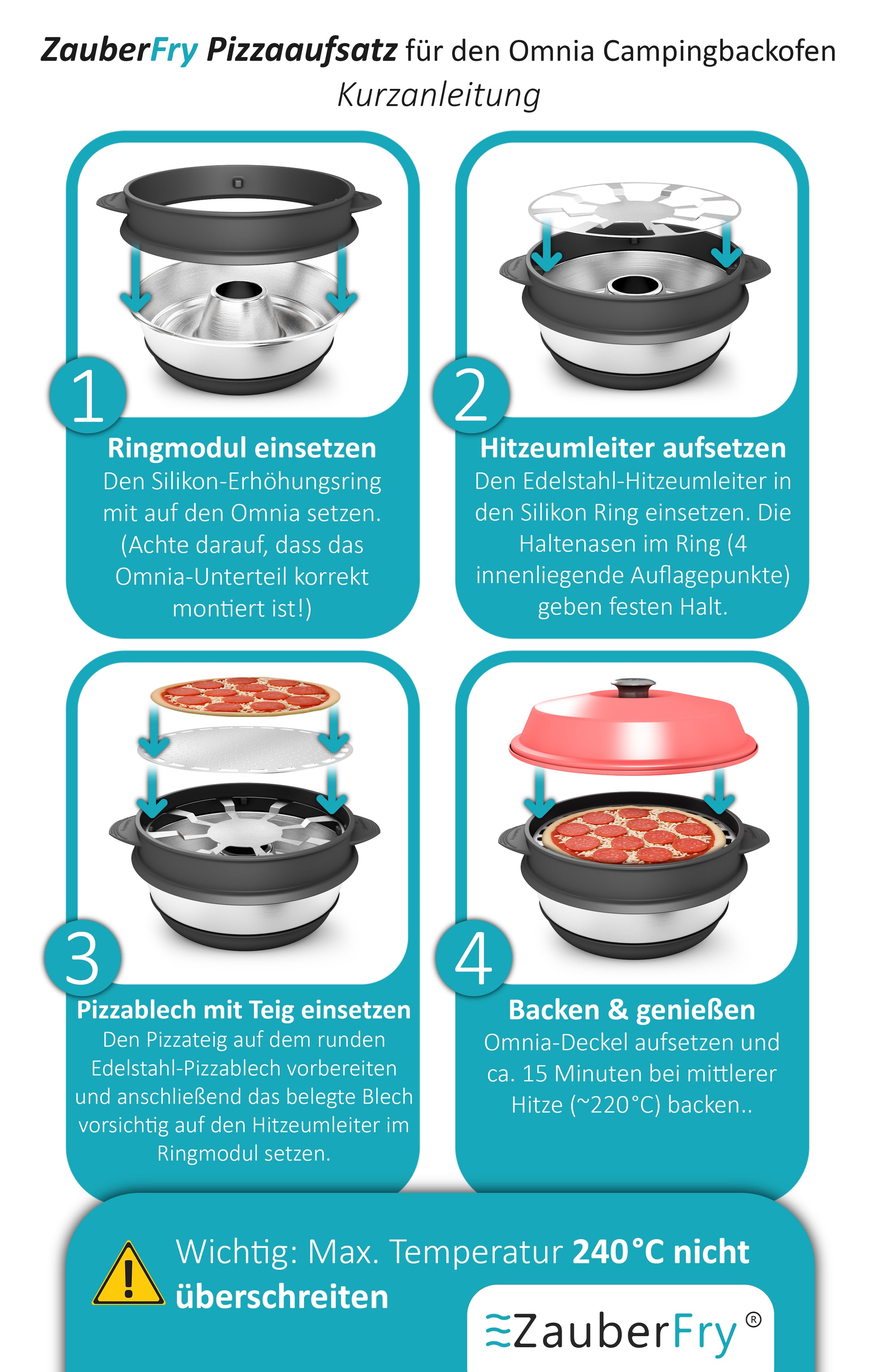 VORBESTELLUNG! AUFGRUND STARKER NACHFRAGE! VERSAND AM 24.11.2025 ZauberFry Pizzaaufsatz kompatibel mit Omnia Camping Backofen – Vollflächiger Backeinsatz aus Edelstahl & Silikon – Lebensmittelecht – Kein Loch in der Mitte – Für Pizza